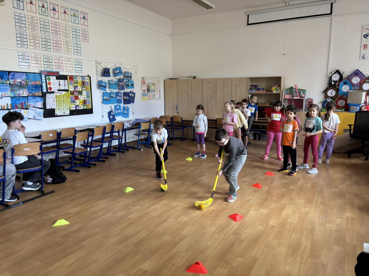 S organizací pomáhali žáci 5. ročníků a my prvňáci jsme si to parádně užili. Slavnostní zahájení i zakončení proběhlo v tělocvičně a nechyběl ani slib sportovců a štafeta s pochodní. Vyzkoušeli jsme si taky 6 disciplín, které byly motivovány olympijskými disciplínami.