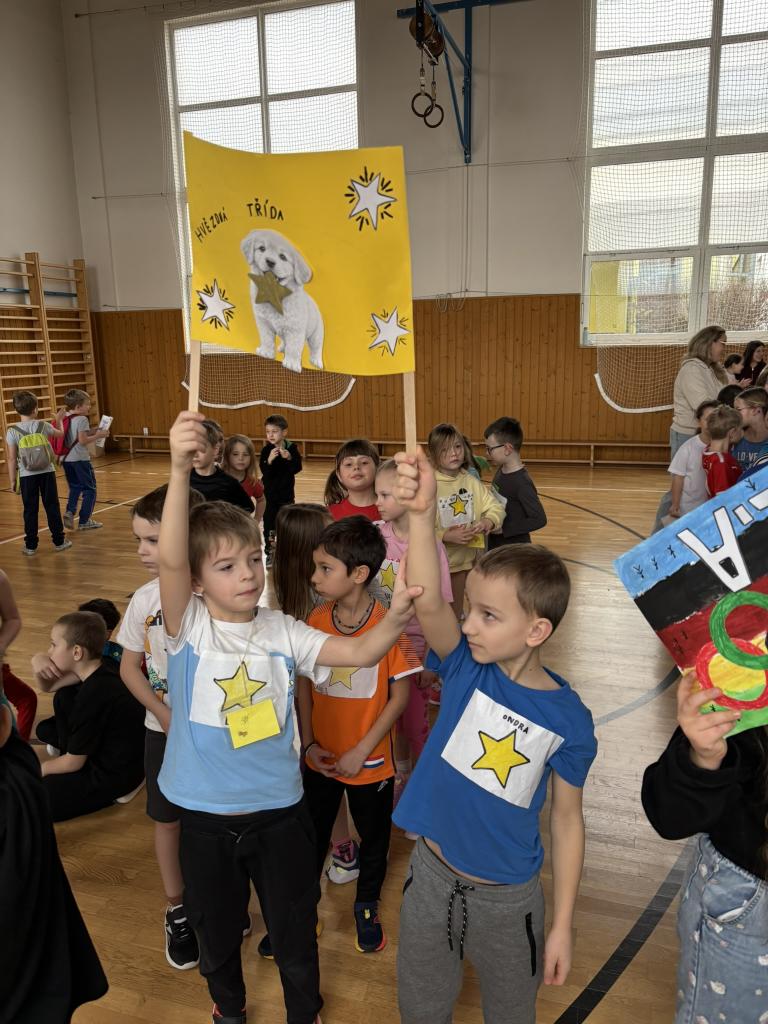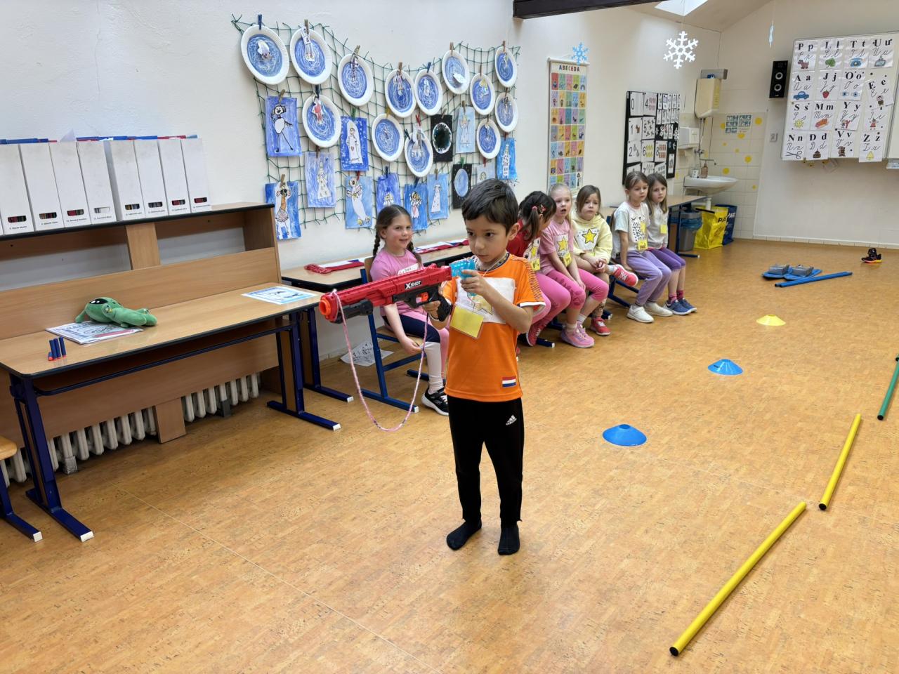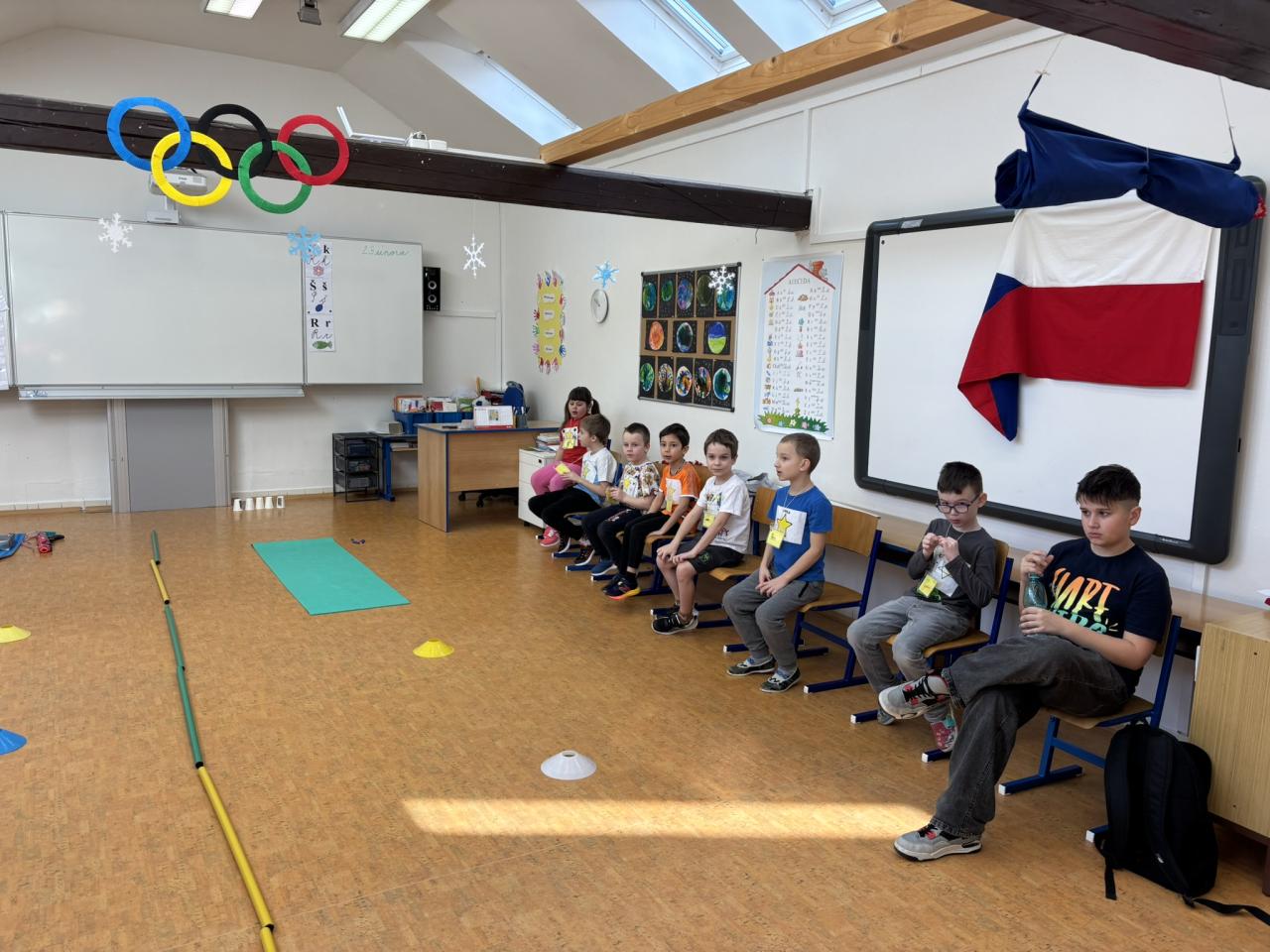 S organizací pomáhali žáci 5. ročníků a my prvňáci jsme si to parádně užili. Slavnostní zahájení i zakončení proběhlo v tělocvičně a nechyběl ani slib sportovců a štafeta s pochodní. Vyzkoušeli jsme si taky 6 disciplín, které byly motivovány olympijskými disciplínami.