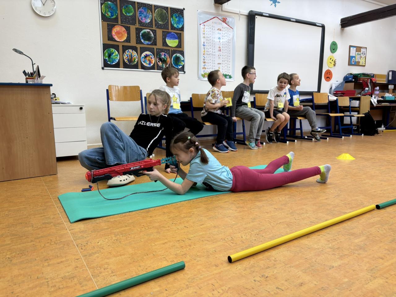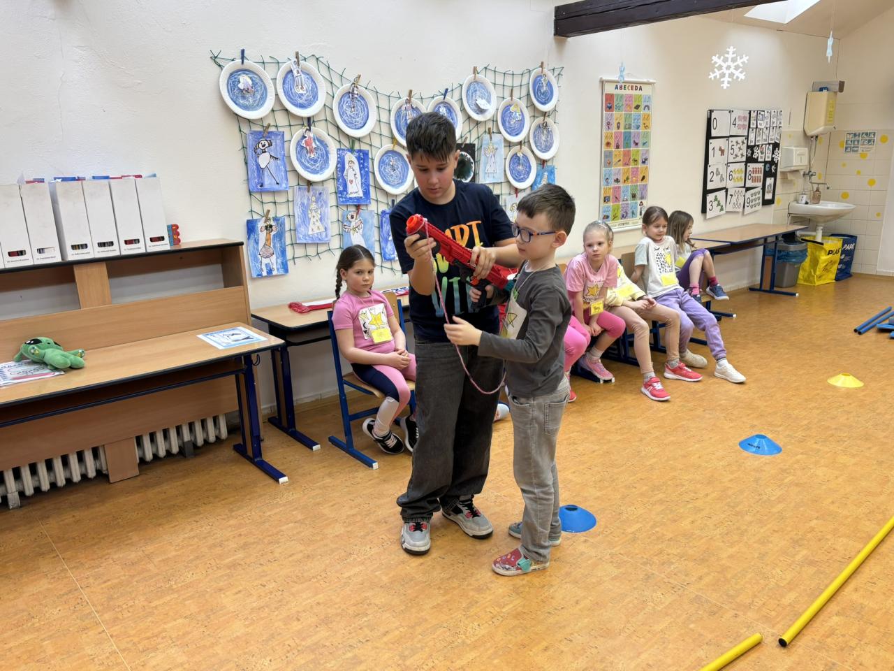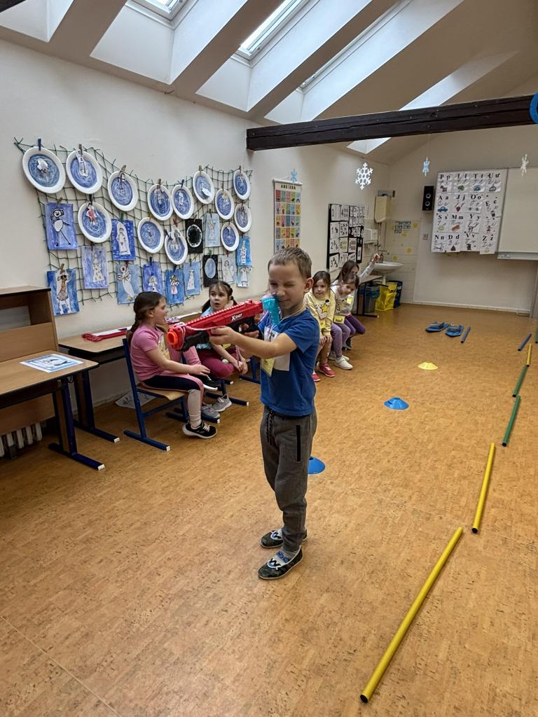 S organizací pomáhali žáci 5. ročníků a my prvňáci jsme si to parádně užili. Slavnostní zahájení i zakončení proběhlo v tělocvičně a nechyběl ani slib sportovců a štafeta s pochodní. Vyzkoušeli jsme si taky 6 disciplín, které byly motivovány olympijskými disciplínami.