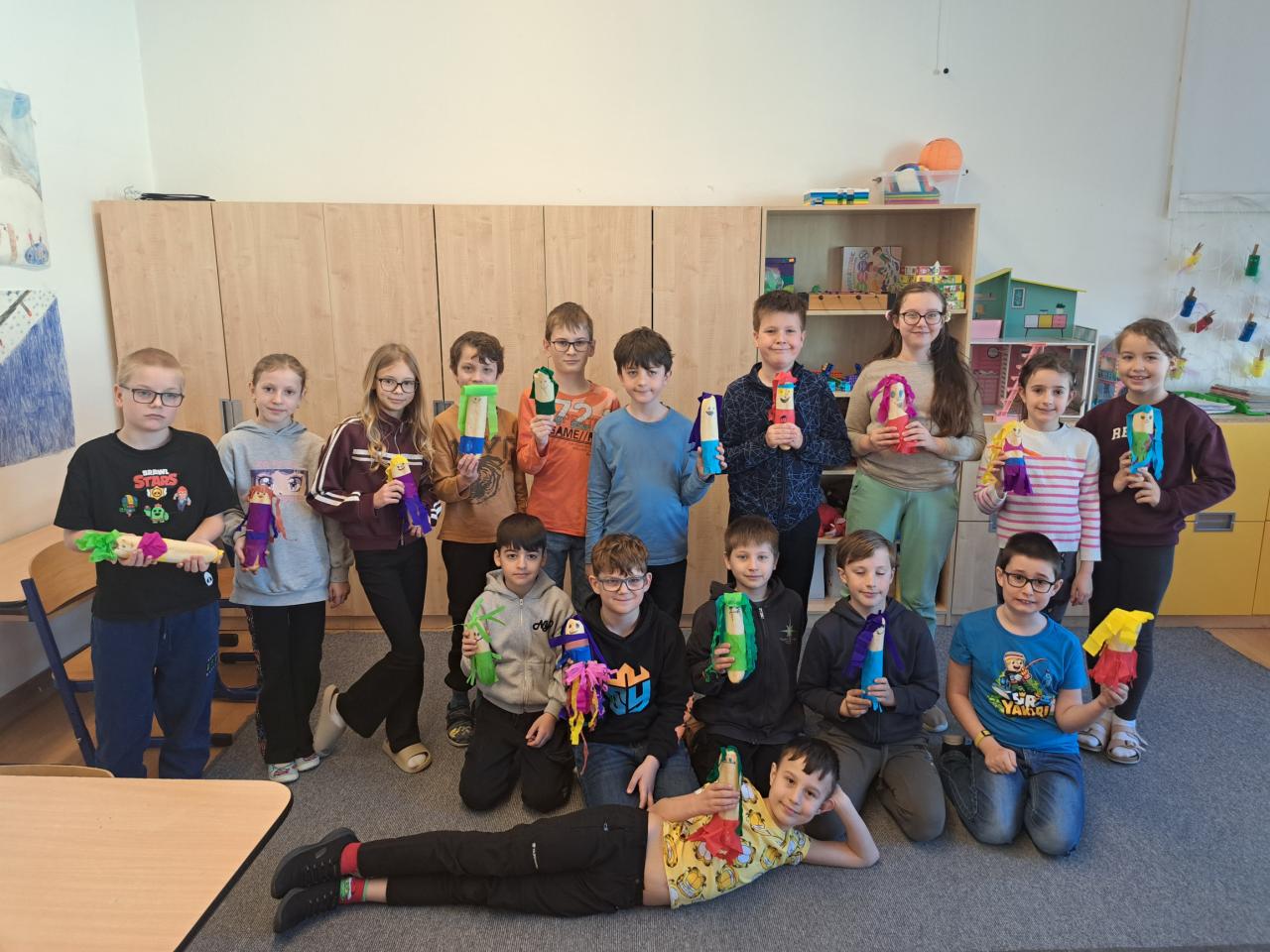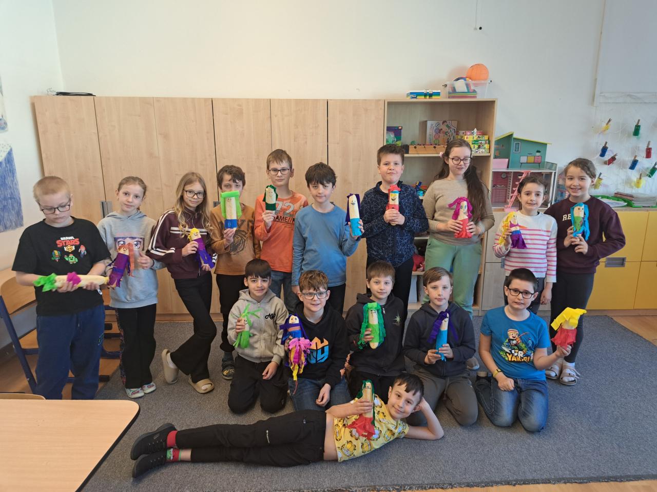 V pondělí 23. března jsme se v naší třídě definitivně rozloučili se zimou. Z baget a krepového papíru jsme si vyrobili vlastní Moreny. S hotovými figurkami jsme se vydali k řece Šatavě, kam jsme je podle starého zvyku hodili.