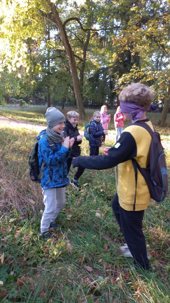 Parkem nás provázela paní Veronika z Lesního závodu Židlochovice. Povídali jsme si o důležitosti stromů, učili jsme se je poznávat podle listů a zahráli jsme si několik her. Na závěr jsme si posbírali suché listy, ze kterých vyrobíme podzimní výrobky.