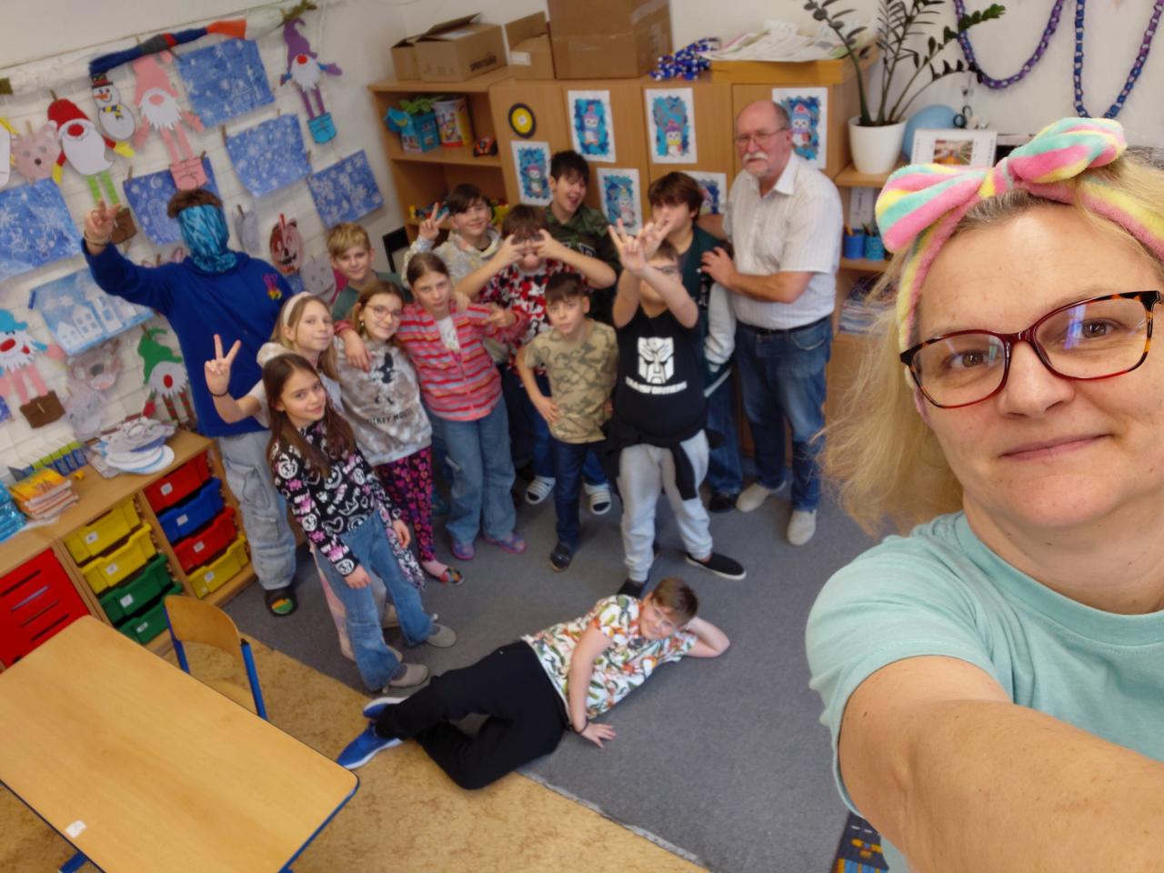 Prožili jsme týden, kdy i naše ponožky musely ladit s náladou dne. Od pondělí až po pátku jsme si to náramně užili. Bylo to barevné, bylo to hlasité a naše pračky si zaslouží dovolenou. Díky všem za skvělou jízdu. Za super partu skvělých dětí paní asistentka.