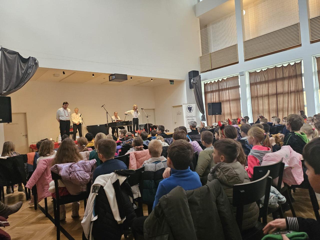 5. prosince k nám zavítala cimbálová muzika Réva ze Zlína s vánočním koncertem pro celou školu. Na představení v Sokecu nechyběl ani Mikuláš s čertem. Všichni si s cimbálkou rádi zazpívali vánoční koledy a písně a na závěr i zatančili.