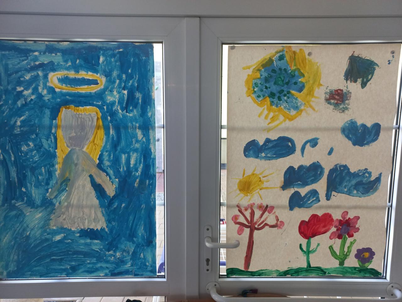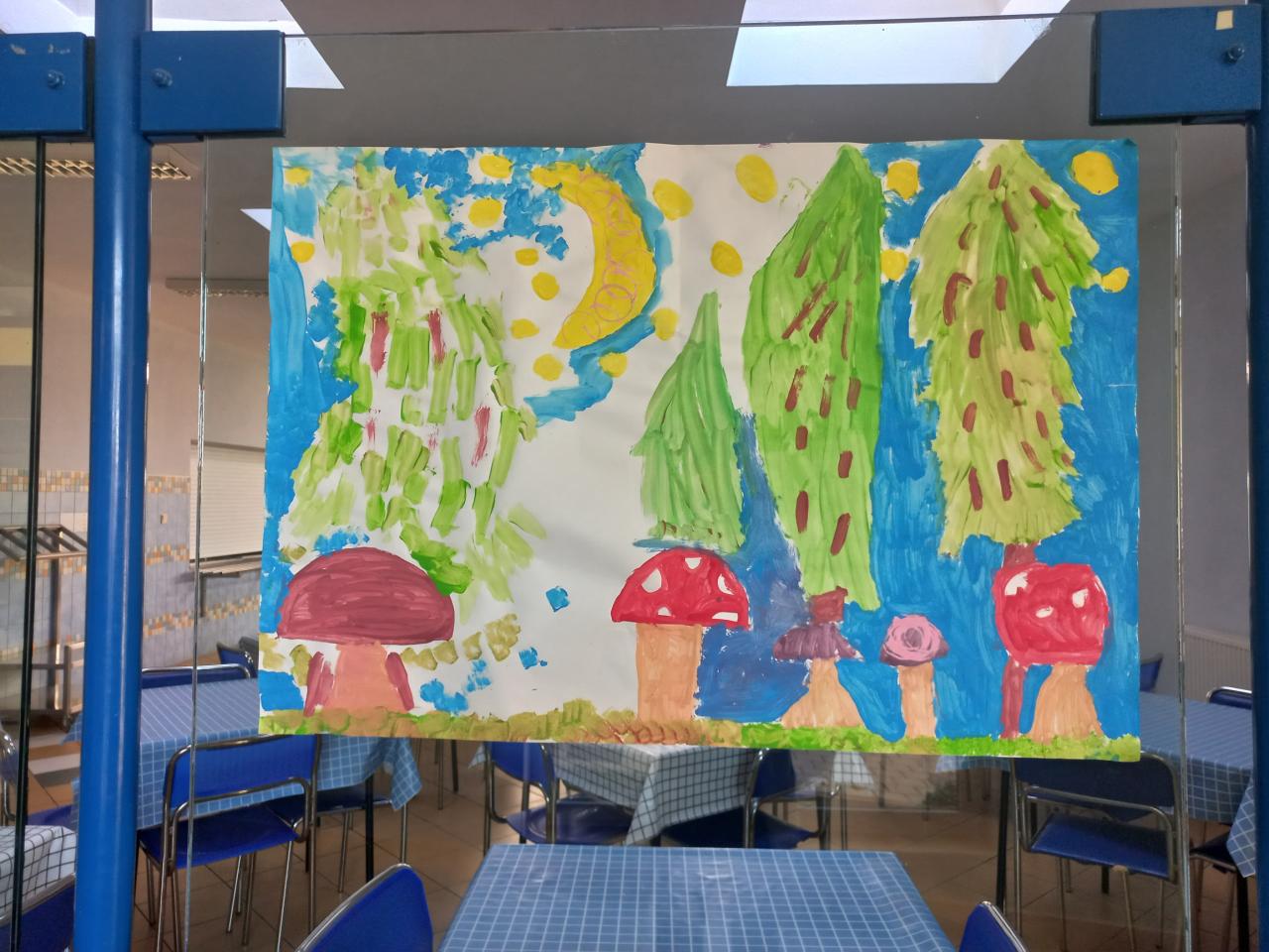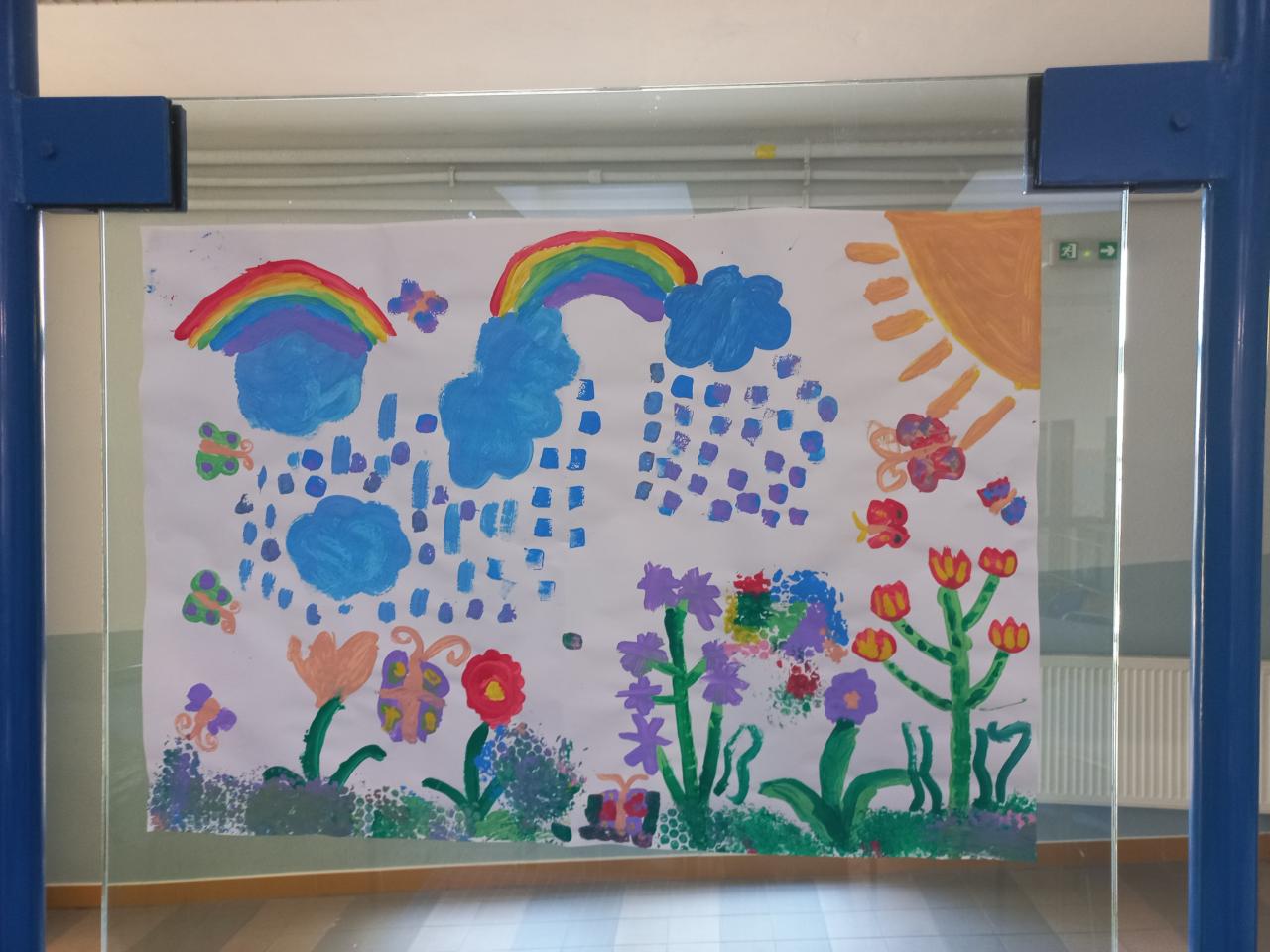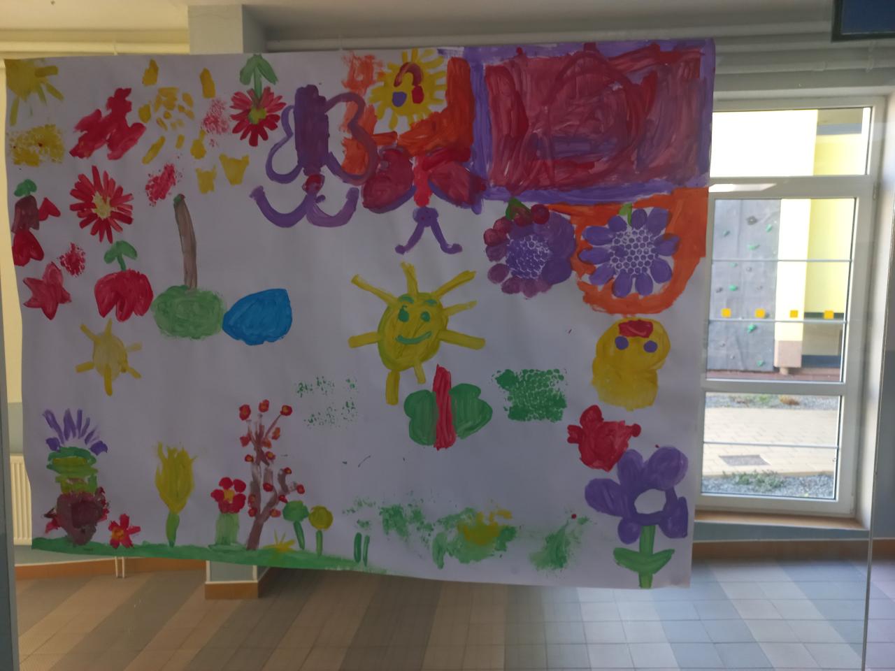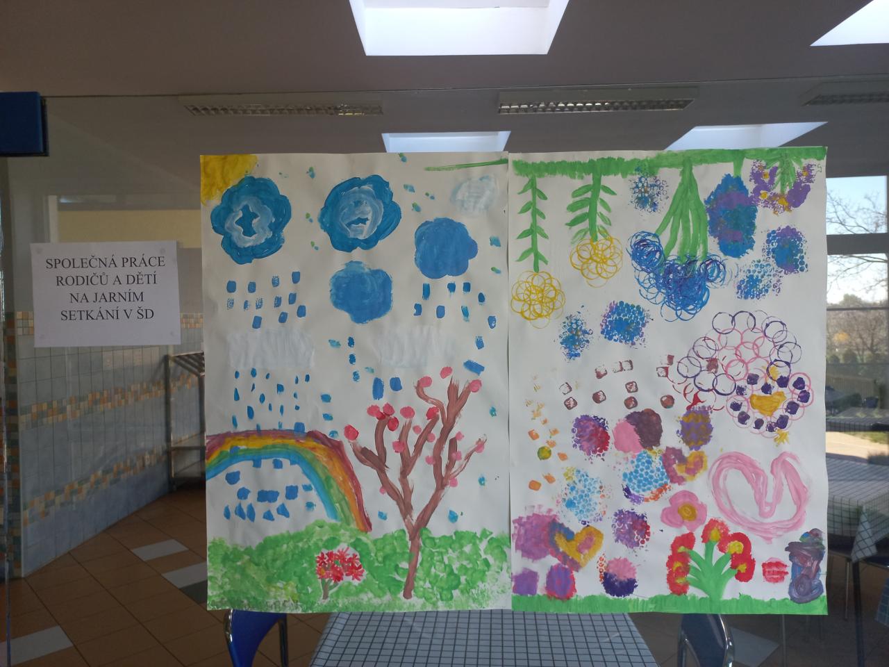 Ve druhé třídě byly připraveny temperové barvy a velkoformátové papíry. Jediným zadáním bylo „jaro“. Děti i rodiče mohli popustit uzdu své fantazii a tvořit, jak se jim zlíbilo. Pro ty, kteří se nechtěli realizovat jen prostřednictvím vlastní představivosti, byla připravena předkreslená jarní louka, kterou stačilo barvami jen vymalovat.