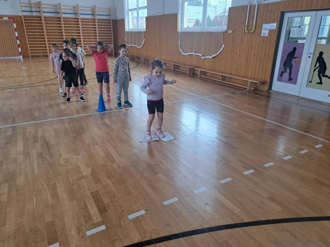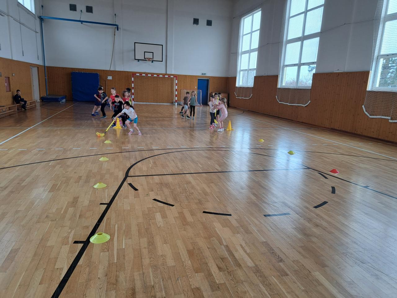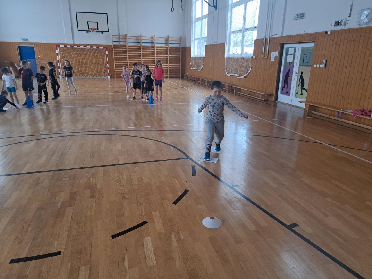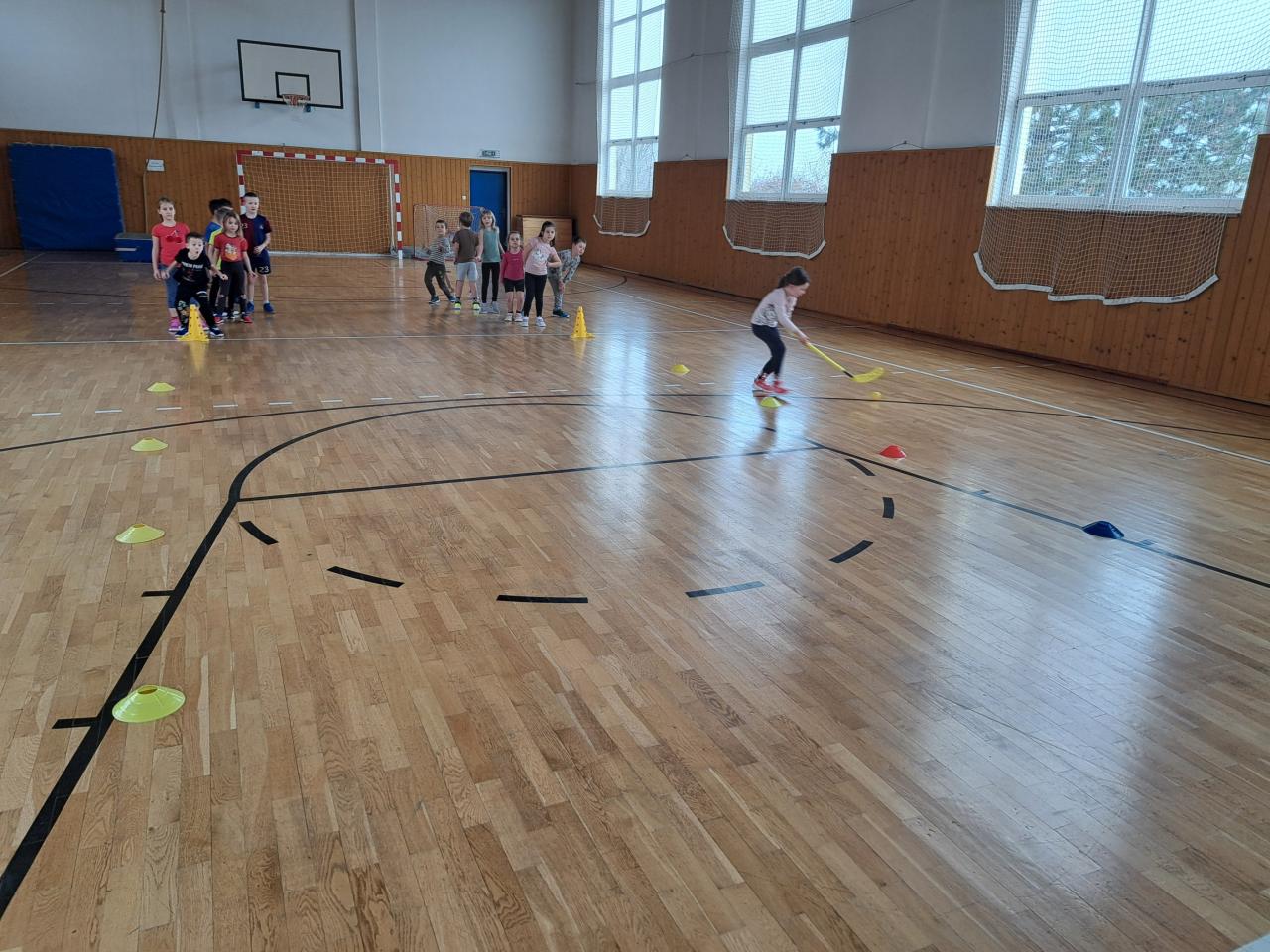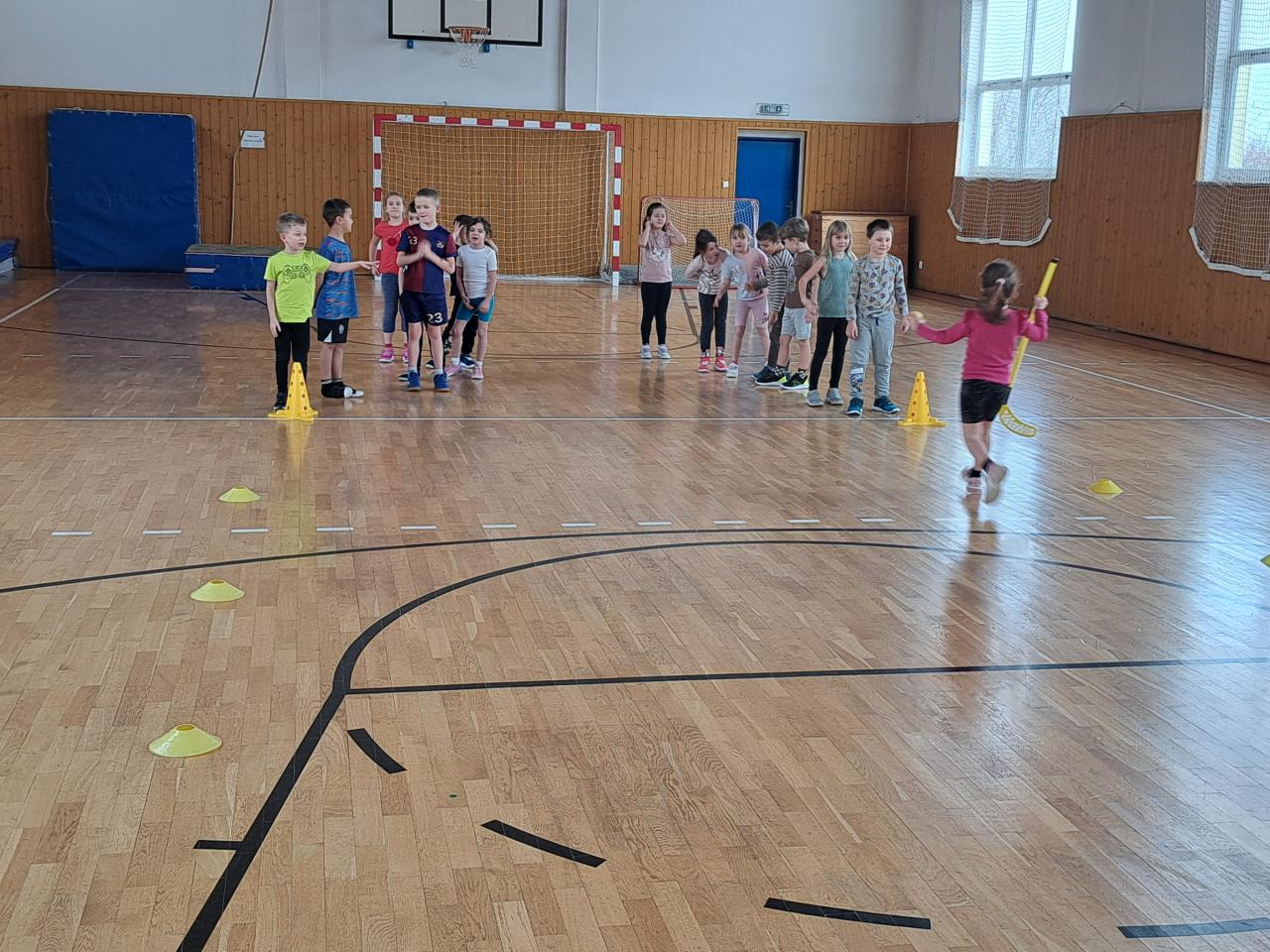 A samozřejmě jsme i závodili. V tělocvičně si děti vyzkoušely slalom mezi kužely, hokej a nechyběl ani biatlon s hody na cíl. Vše jsme zakončili „netradiční“ disciplínou – koulovačkou s míčky.
