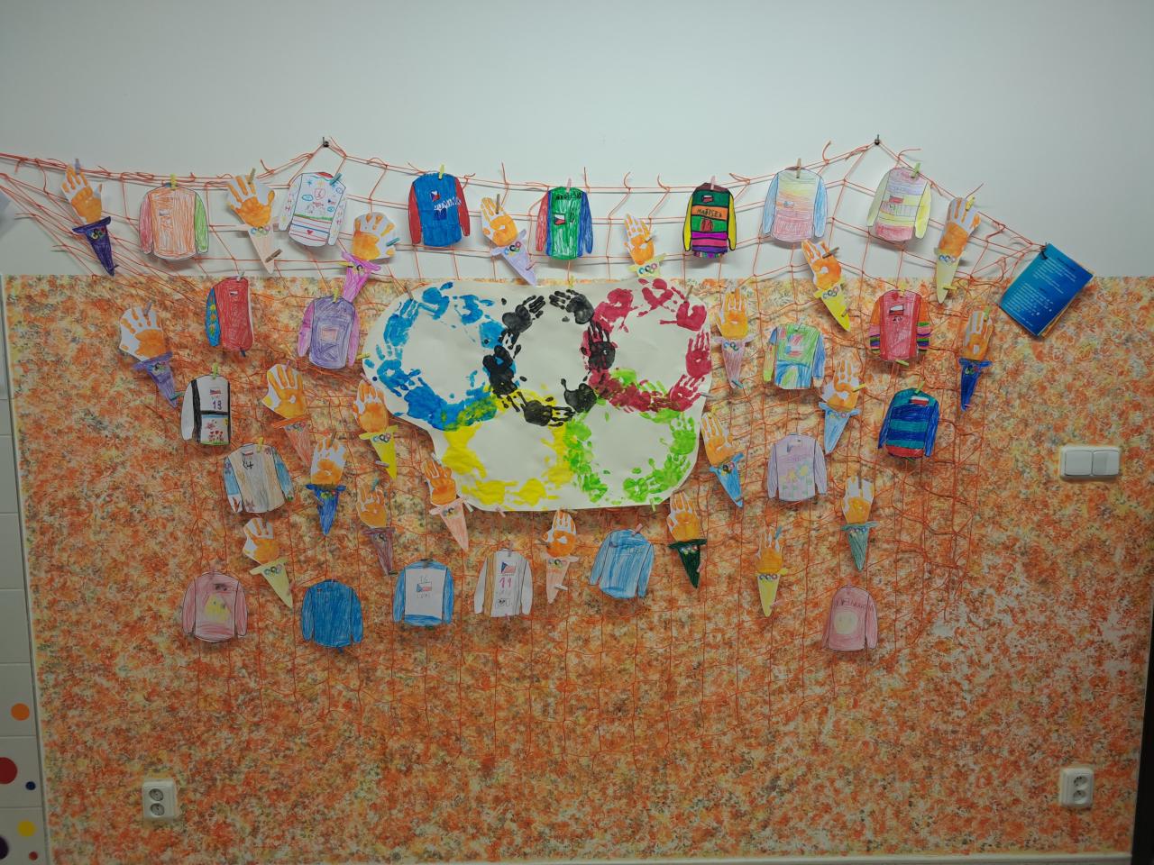 A pustili jsme se i do tvoření. Vyrobili jsme si velké olympijské kruhy, které nám teď zdobí nástěnku, každý si připravil vlastní papírovou pochodeň a nechyběly ani originální dresy s číslem a jménem.