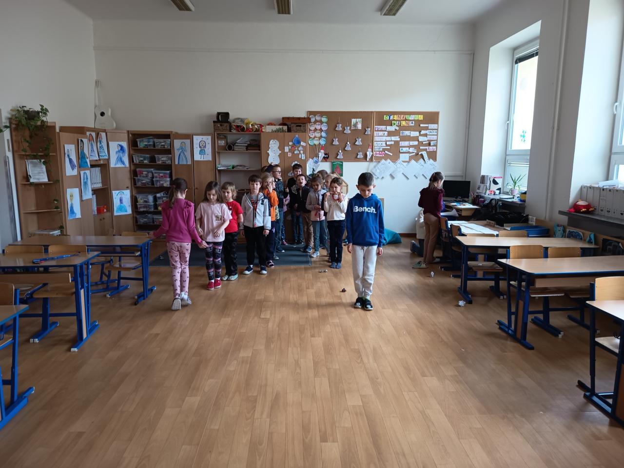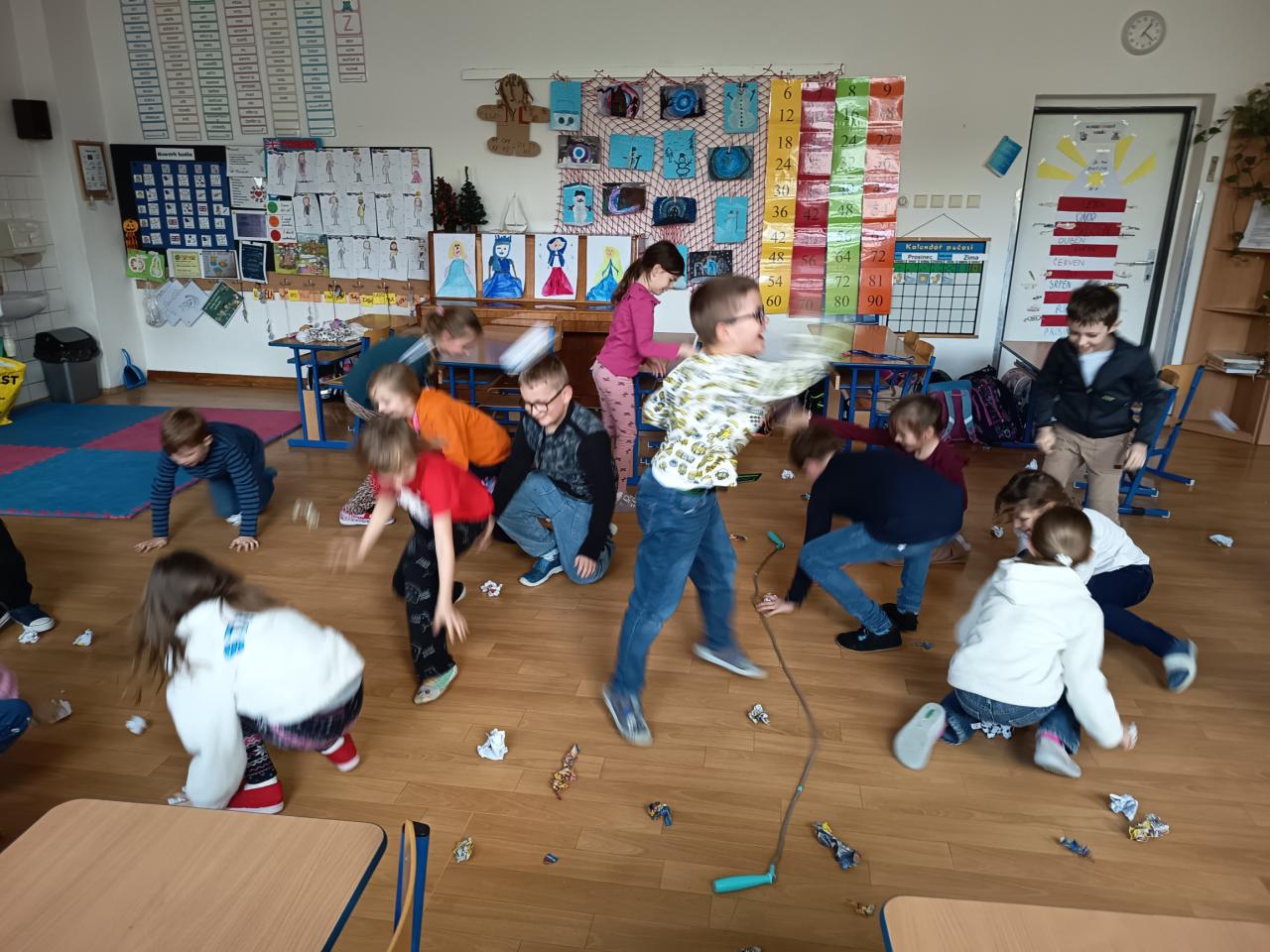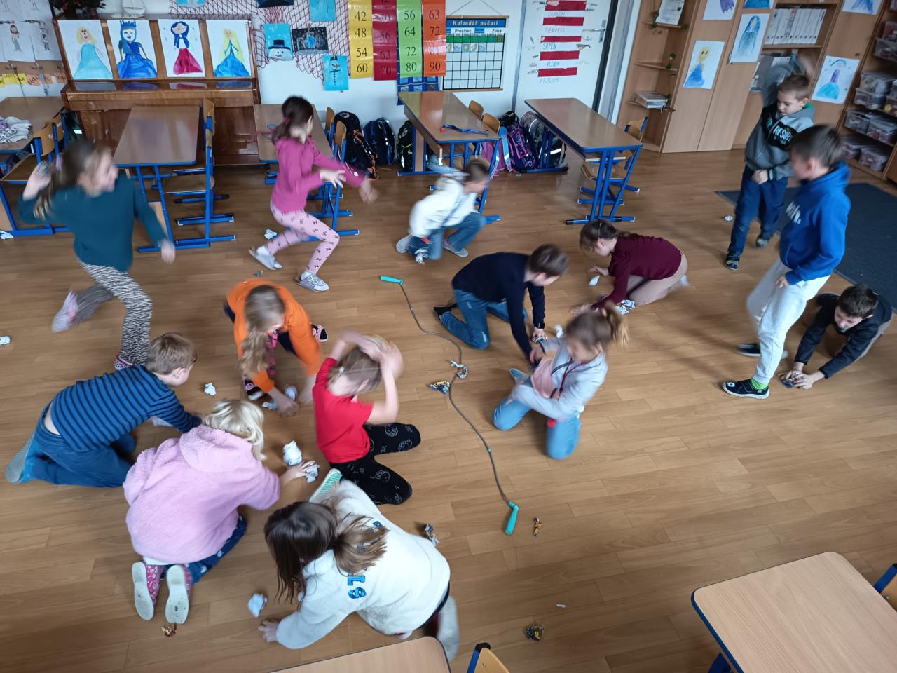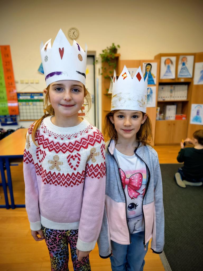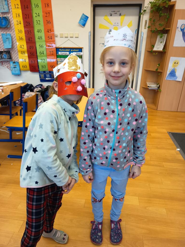 Hned první týden jsme se pustili do výroby korun na tři krále. Děti dostaly volný prostor k výrobě. A tak bylo jen na nich, jak si korunu vyrobí a ozdobí. A protože sníh nám zatím moc nepřál, tak jsme si v družině zahráli sněhovou bitvu z papírových koulí. Děti si i zkusily pohyb tučňáků. Venku nám začalo mrznout a my se mohli vydat na menší procházku přes rybník do lesoparku, kde to máme rádi.