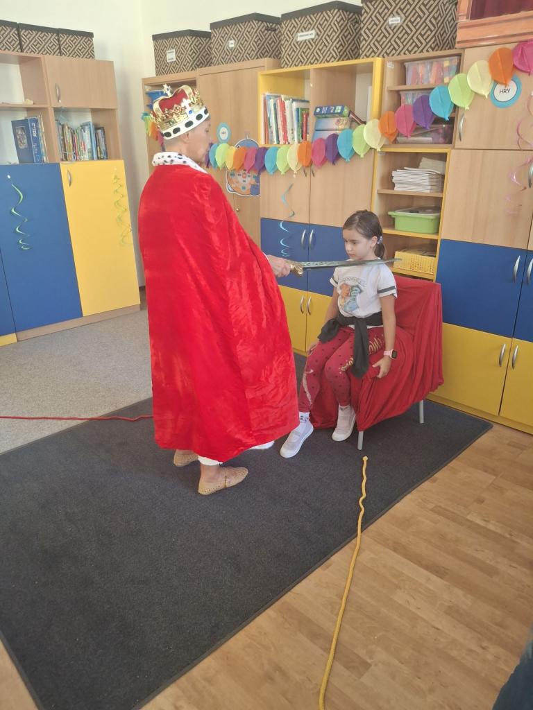 Stoly připraveny, červený koberec rozvinutý, královský plášť a meč v pohotovostní poloze. Vše se zdálo být v nejlepším pořádku. A tak byl každý pasován na rytíře, obdržel medaili a malou pozornost a pak jsme si všichni připili šampaňským přímo z královských sklepů a pustili se do hodování. Nezbývá než doufat, že nás čeká stejně dobrý rok, jako byl ten loňský, a že si to v družině společně užijeme😊.