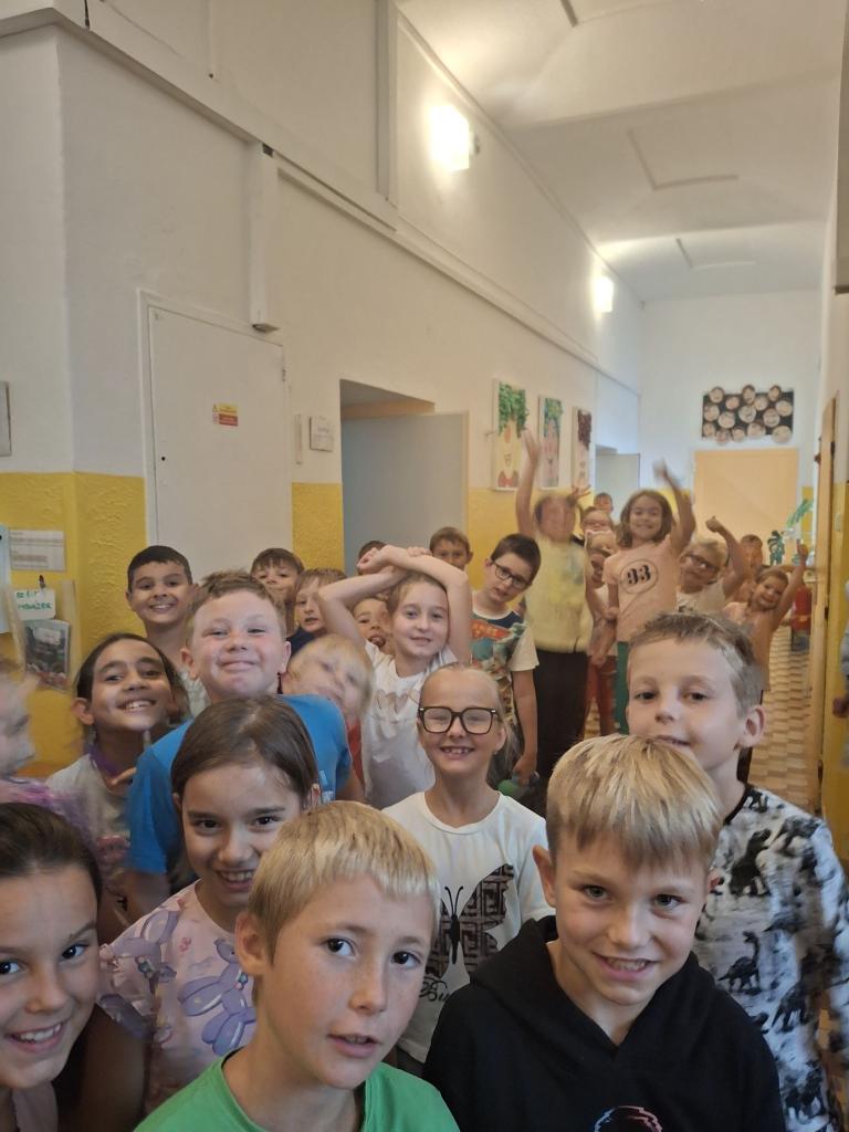 S hledáním pokladu jsme začali v naší družinové třídě, kde jsme objevili první svitek. Ten obsahoval první indicii, která nás zavedla do prvního patra školy. Každý další svitek přinesl novou indicii, kterou jsme společnými silami rozluštili a mohli jsme tak postupovat dále. Poslední svitek nás navedl přímo k pokladu, který měl být ukrytý v místnosti se dvěma děravými koši. Ale co by to mohlo být za místnost? Že by v některé ze tříd měli dva odpadkové koše? Ale k čemu vlastně je děravý odpadkový koš? A k čemu jsou dva odpadkové koše v jedné místnosti? Hlavou se nám honila spousta otázek. Ale pak naštěstí přišel takzvaný moment AHA, kdy nám bylo najednou všechno jasné, protože jsme si uvědomili, že se vůbec nemusí jednat o odpadkové koše. A v tom okamžiku jsme měli poklad na dosah ruky. Jasně! Poklad je v tělocvičně! A opravdu. Po krátkém hledání jsme ho objevili. A protože se během hledání všichni opravdu snažili, přemýšleli a poctivě luštili šifry, byl poklad rozdělen mezi všechny, kdo se na pátrání podíleli 😊.