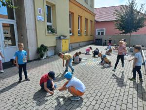 Ve čtvrtek jsme se s dětmi z prvního oddělení školní družiny vydali kreslit křídami na chodník před školou. Fantazii se meze nekladly a chodník se brzy proměnil v pestrou galerii dětských nápadů.