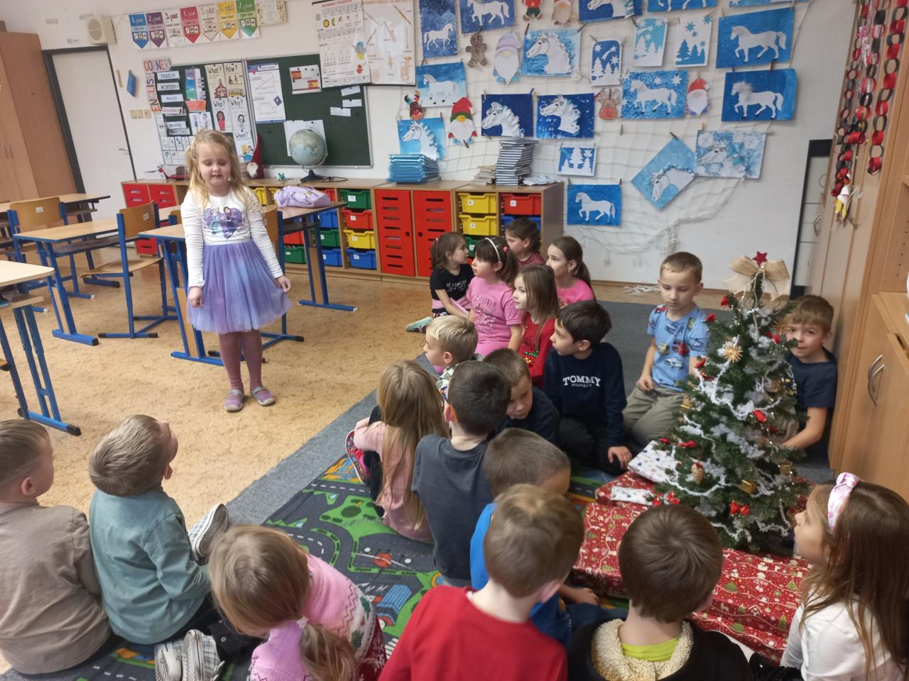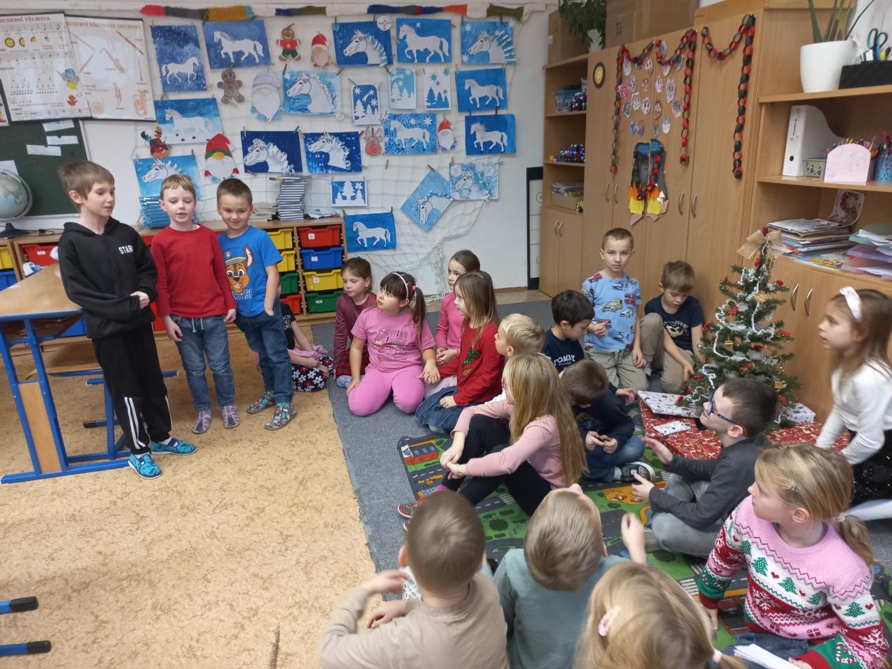 Nakonec jsme se dočkali – do naší družiny přišel Ježíšek a přinesl dárečky. Než jsme se pustili do rozbalování, děti zarecitovaly vánoční básničky a zazpívaly koledy. Poté si s nadšením rozbalily dárky a nové hračky hned vyzkoušely. Děti měly z dárků velkou radost a velmi je potěšily.